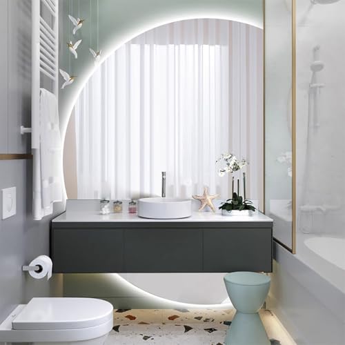 Aenmezen Shaving Cosmetic LED Wall Mirror, Backlit Lighted 3-Color Dimmable, Smart Touch Button Anti-Fog, Hallway Wall Decoration Mirror, Half Circle Frameless(Right semicircle,47in)