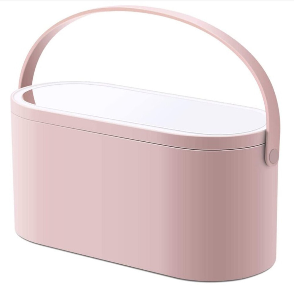 Monozoz LED Makeup Bag with Mirror, Makeup Bag with Lighted Mirror - Portable Carrying Case, Large Cosmetic Storage Box with Light Skin Texture, Pink, Se référer au descriptif, Refer to description