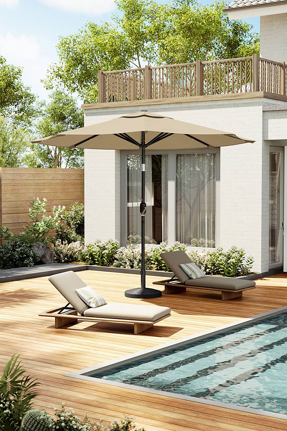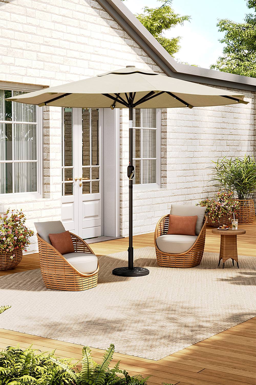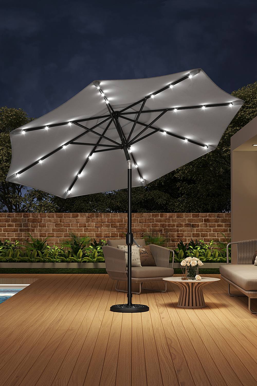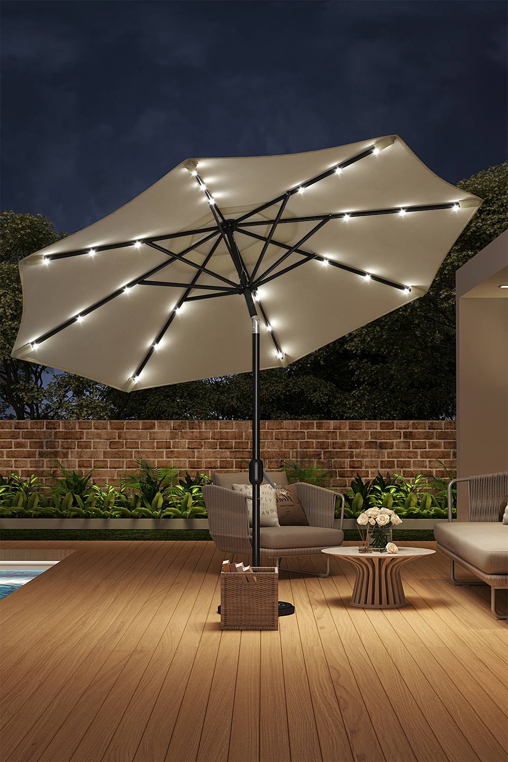 10ft Solar 32 LED Lights Patio Umbrella with Tilt Adjustment and UV-Resistant Polyester Fabricï¼Market Umbrella for Outdoor, Khaki