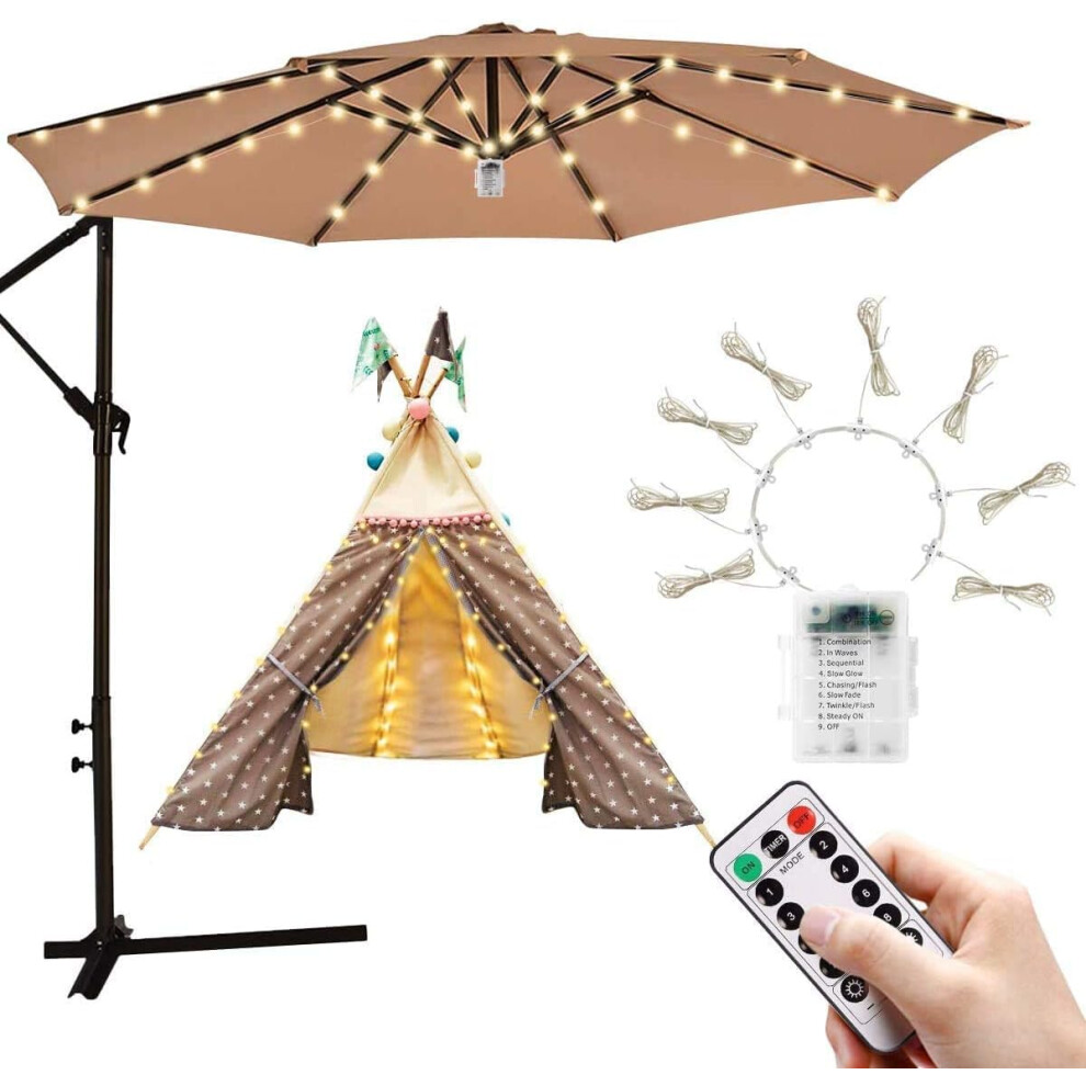 Parasol Lights 104 LED Patio Umbrella Lights With Remote, 8 Modes, Waterproof Battery Operated, Garden Party Decor