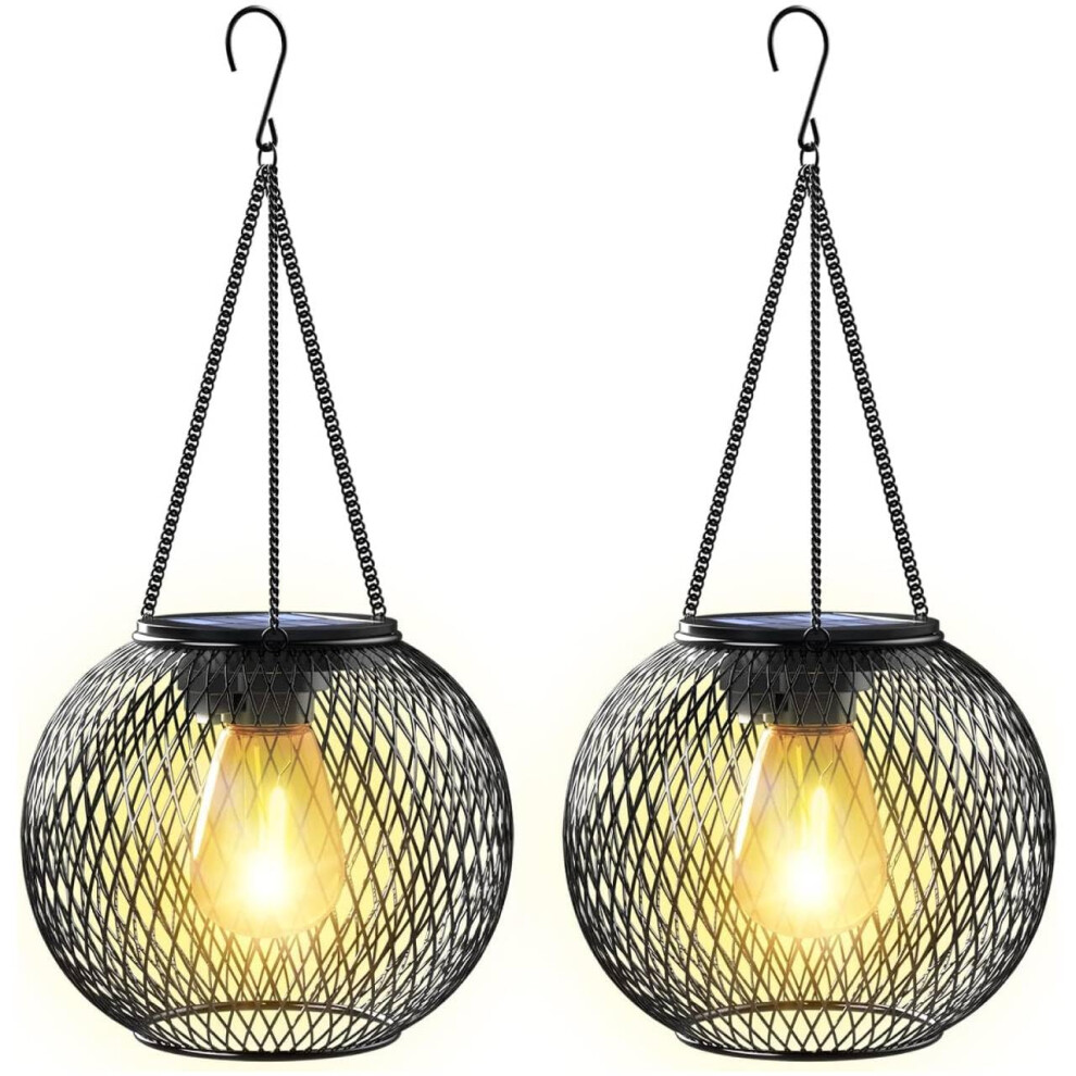 Solar Hanging Lanterns Metal Mesh Globe Design 2 Pack IP65 Waterproof Warm White LED Outdoor Patio Lights