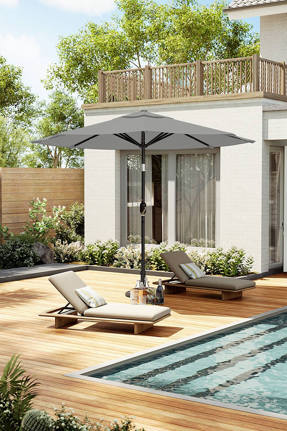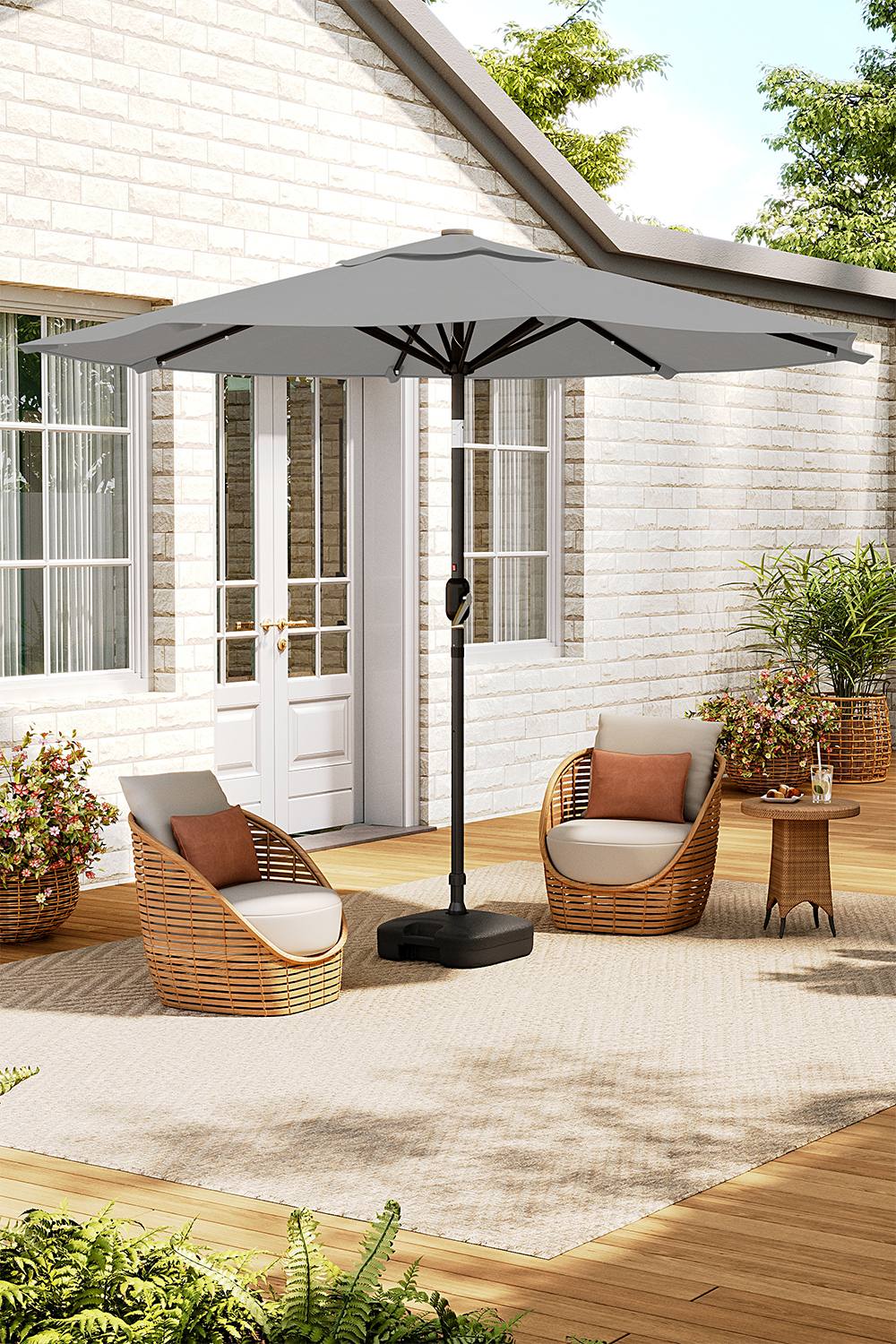 Outsunny 3 m Garden Parasol Umbrella with LED Lights, Patio Umbrella Grey