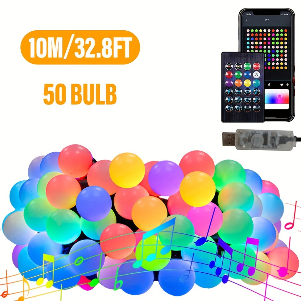 (10M/32.8FT-50 Bulbs) LED Smart Patio Lights String Spherical Garland Lights RGBIC with Remote