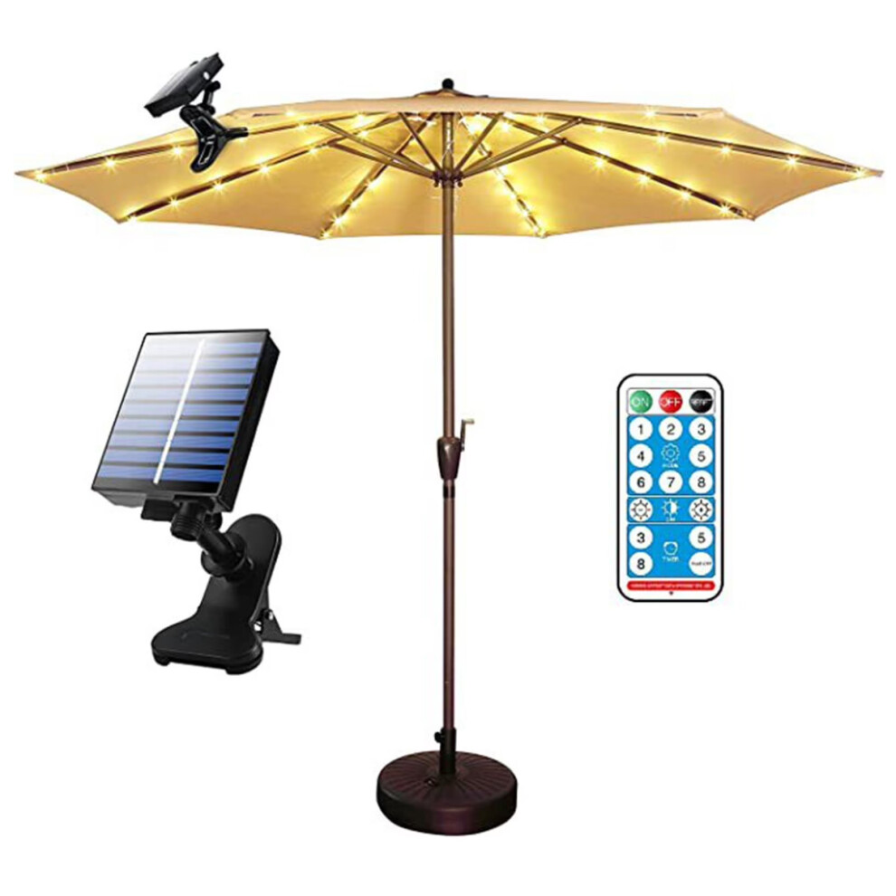 (Black) Solar Umbrella Lights Outdoor Timed Remote Control Solar Powered Patio Umbrella Lights LED Umbrella Patio Lights For Beach Tent Camping Garden