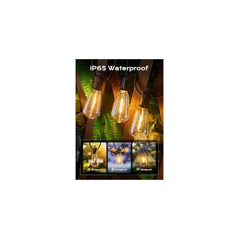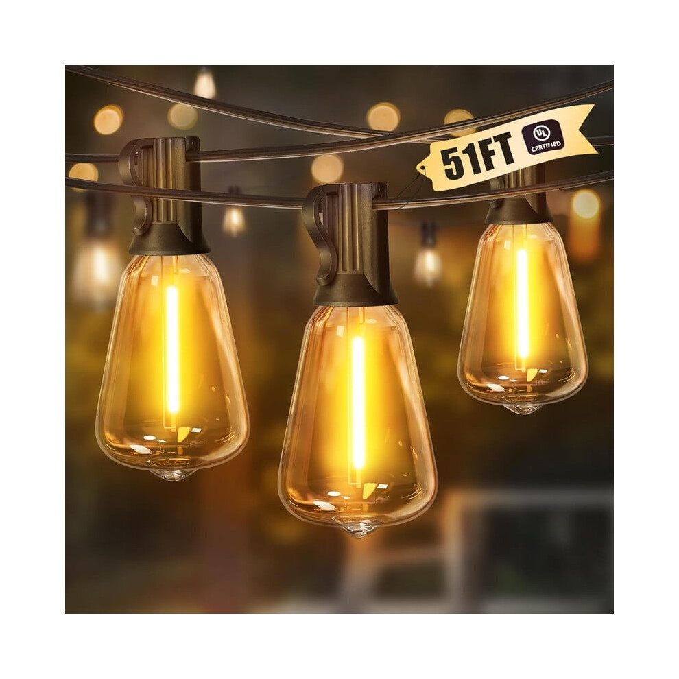 51FT Waterproof Outdoor String Lights, 2700K LED Patio Lights with 25+2 Spare ST38 Bulbs, Retro Edison, Compatible with Outdoor/Garden/Balcony