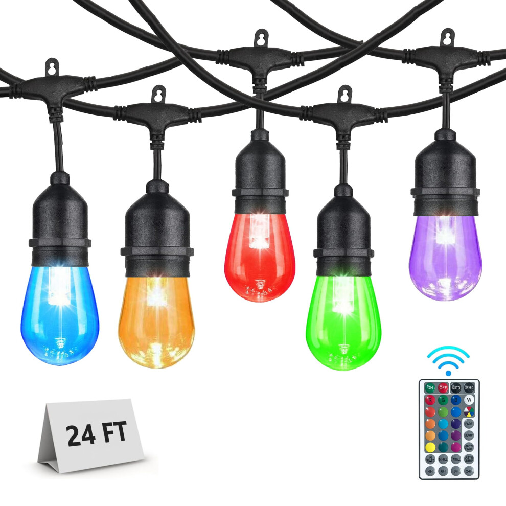 24FT Waterproof RGB Outdoor String Lights with Remote, 17 Colors Shatterproof LED Patio Lights
