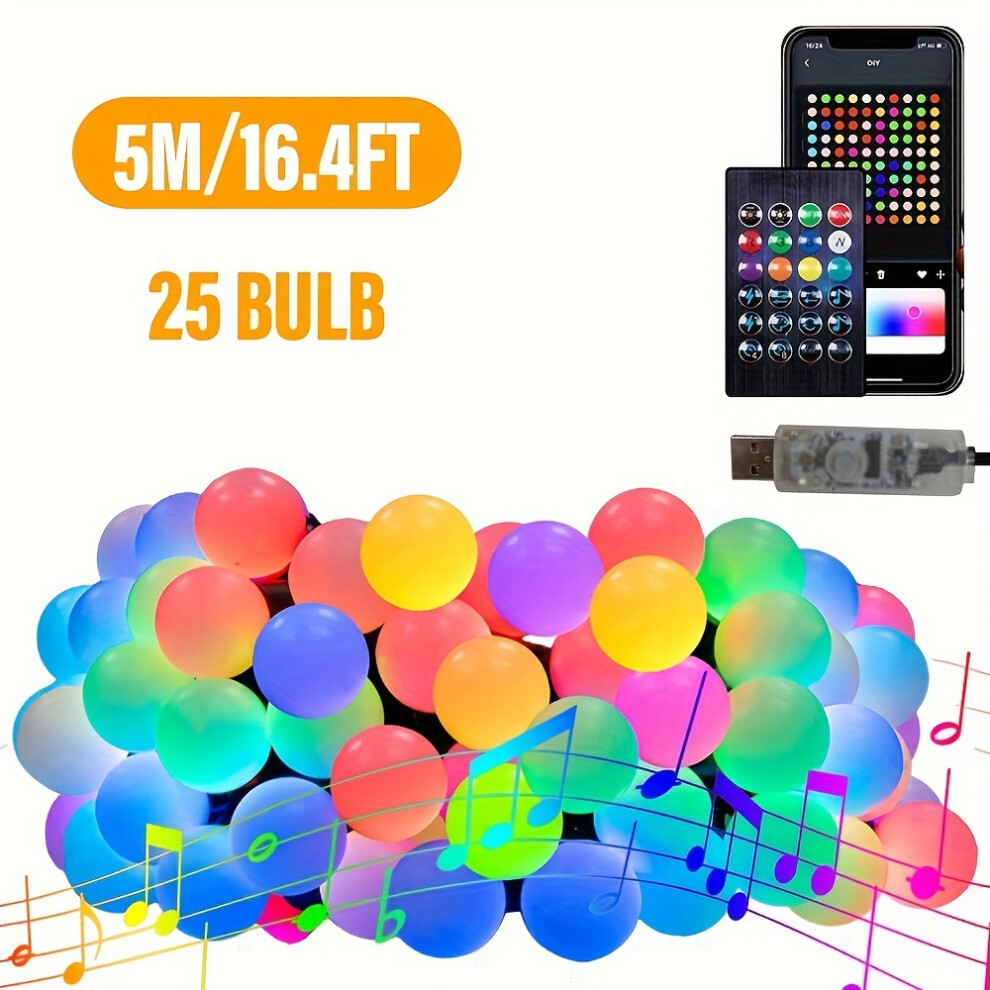 (5M/16.4FT-25 Bulbs) LED Smart Patio Lights String Spherical Garland Lights RGBIC with Remote