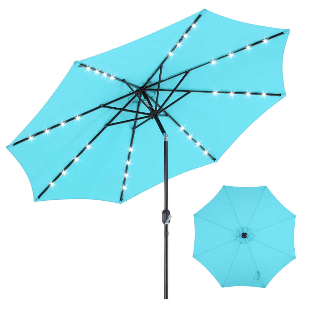 10ft Solar 32 LED Lights Patio Umbrella with Tilt Adjustment and UV-Resistant Polyester Fabricï¼Market Umbrella for Outdoor, Lake Blue