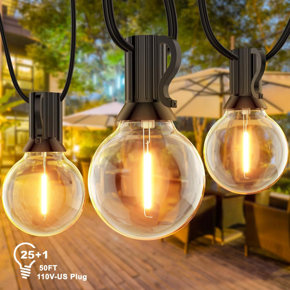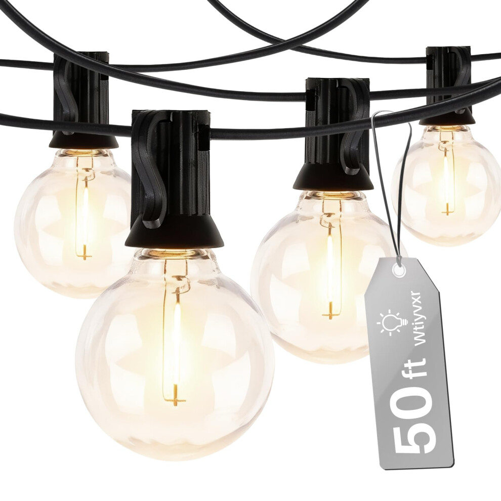 50 FT Outdoor String Lights Waterproof G40 LED Patio Lights Shatterproof Dimmable Warm Glow E12 Base
