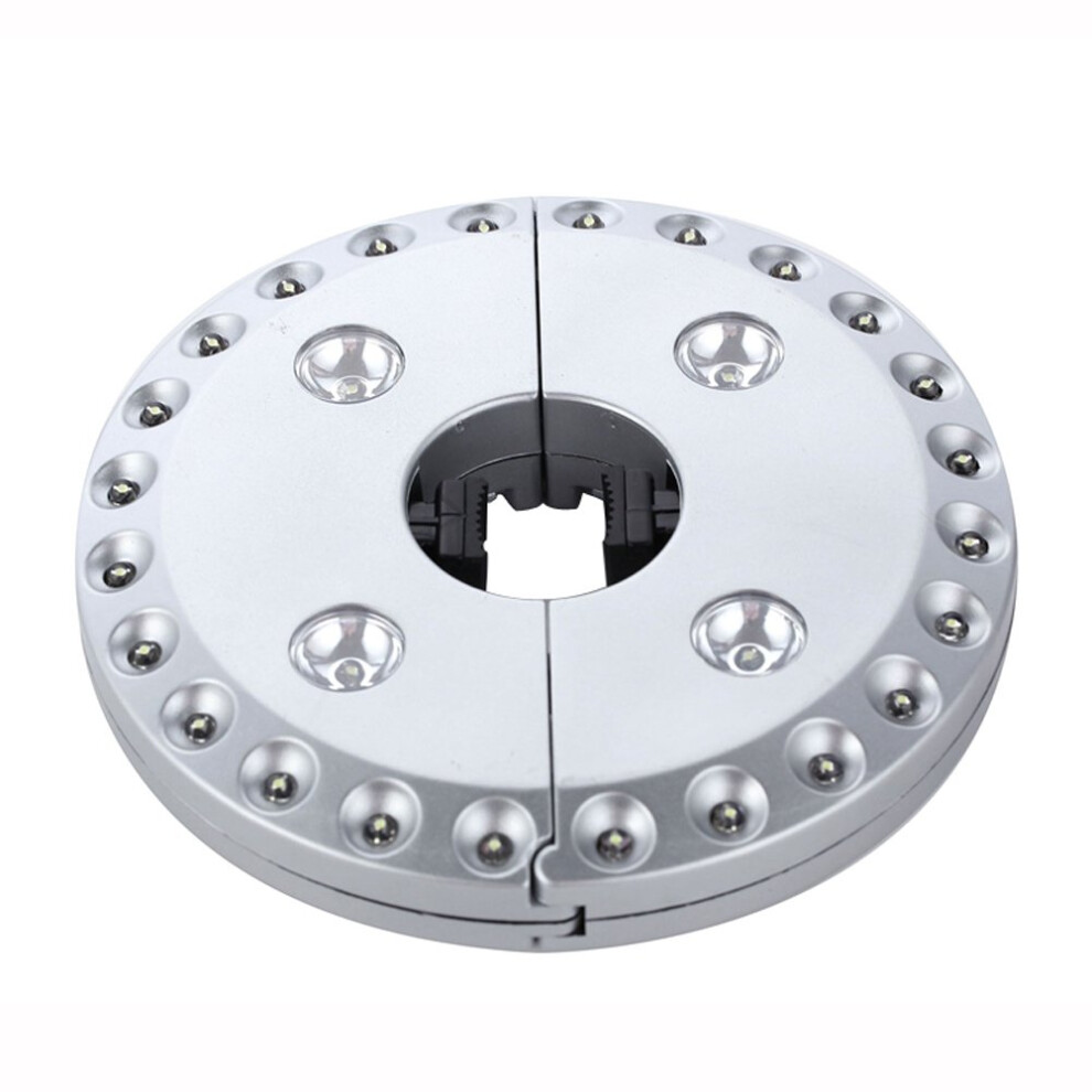 28 LED Patio Umbrella Lights with Adjustable Brightness, Battery Powered Easy Clamp for Camping