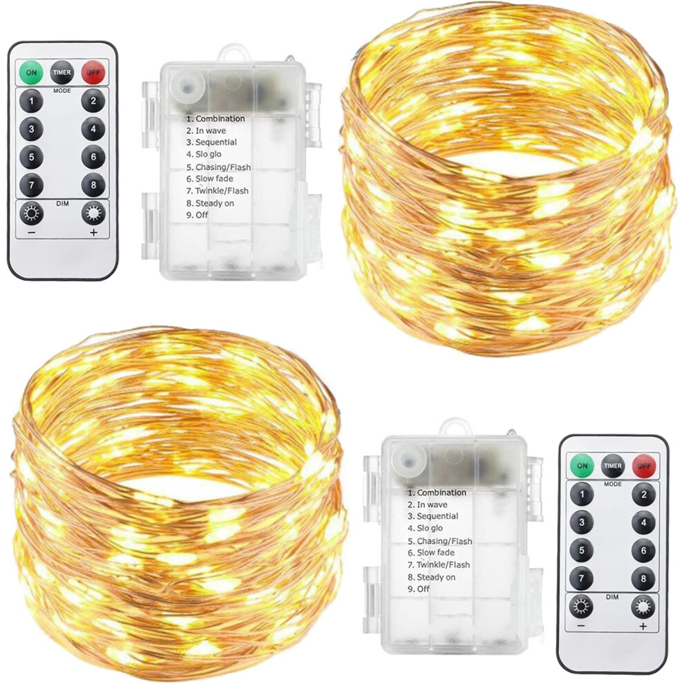 Battery Operated Fairy Lights for Patio, LED String Lights with Timer Function and Remote Controlled 8 Modes, Dimmable Waterproof Twinkling Fireflies
