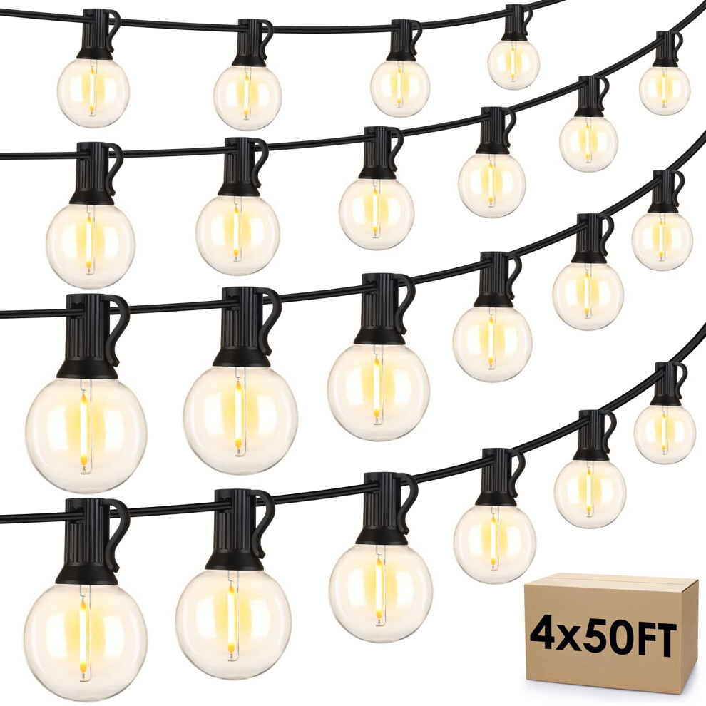 200Ft G40 Globe Outdoor String Lights, Waterproof LED Patio Lights with Connectable Warm White Glow