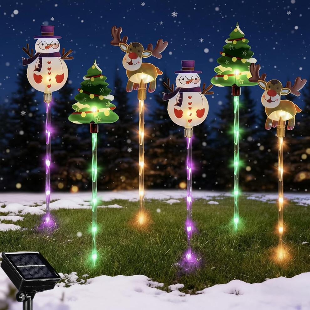 6 Pack Moving Christmas Solar Lights - LED Reindeer & Tree Outdoor Garden Stakes