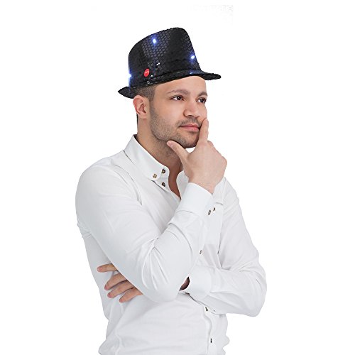 Dress Up America Black Fedora Hat with Flashing LED Lights For Adults - Flashing Fedora Hats - Hat for Costume Accessories Party -Led Jazz Hat Cowboy Hat