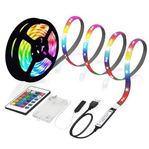 MUSUNIA 5m RGB 5050 LED Strip Battery Operated or USB, Remote Dimmable 16 Colours, Cuttable for TV Backlight, Cabinets, Stairs Decoration
