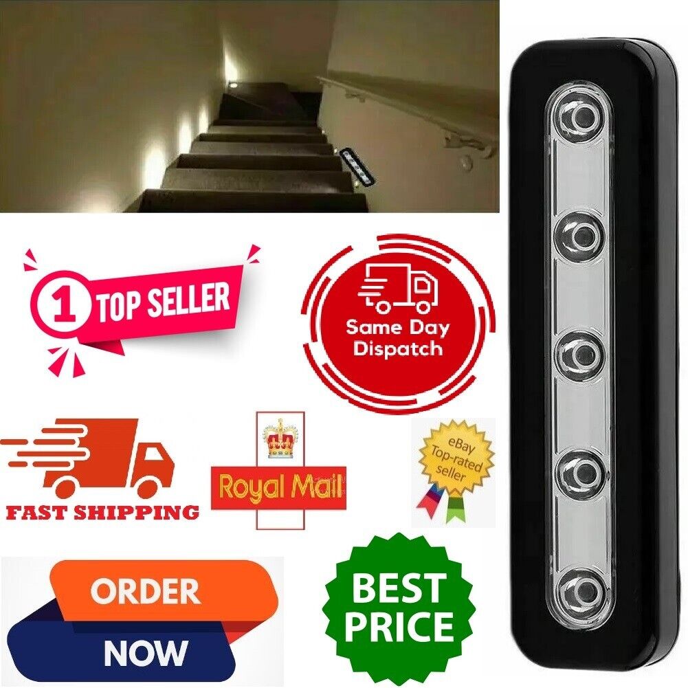 PIR Motion Sensor LED Strip Light Battery Wireless Stairs Cabinet Closet Lamp UK