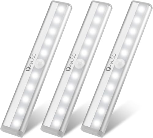 OxyLED Battery Led Strip Lights, Battery Motion Sensor Lights 3-Pack Auto On/Off Cool White LED Strips Magnetic & Stick LED Light Bar Ideal for Wardrobes, Cabinets & Kitchens (Indoor Use)