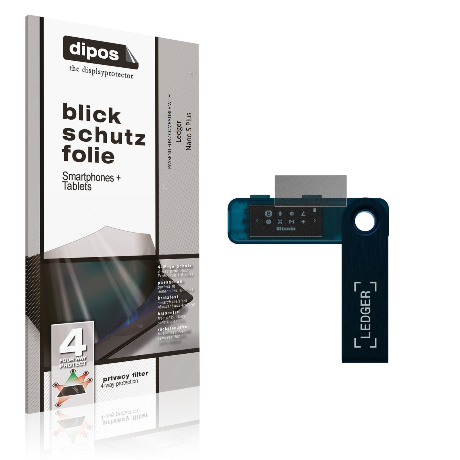 Screen Protector for Ledger Nano S Plus Privacy Filter 4-Way Protection dipos