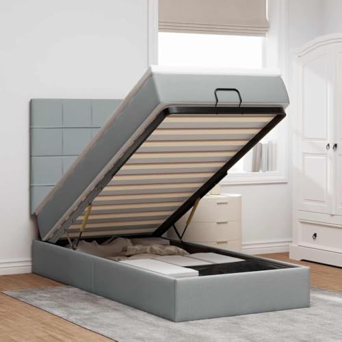 Teenpull Ottoman Bed with Mattress & LEDs, Light Grey 90 x 190 cm, Fabric Cover, Comfort Pocket Spring, Hydraulic Storage Room, Ambient Lighting, Modern Bedroom Furniture Set