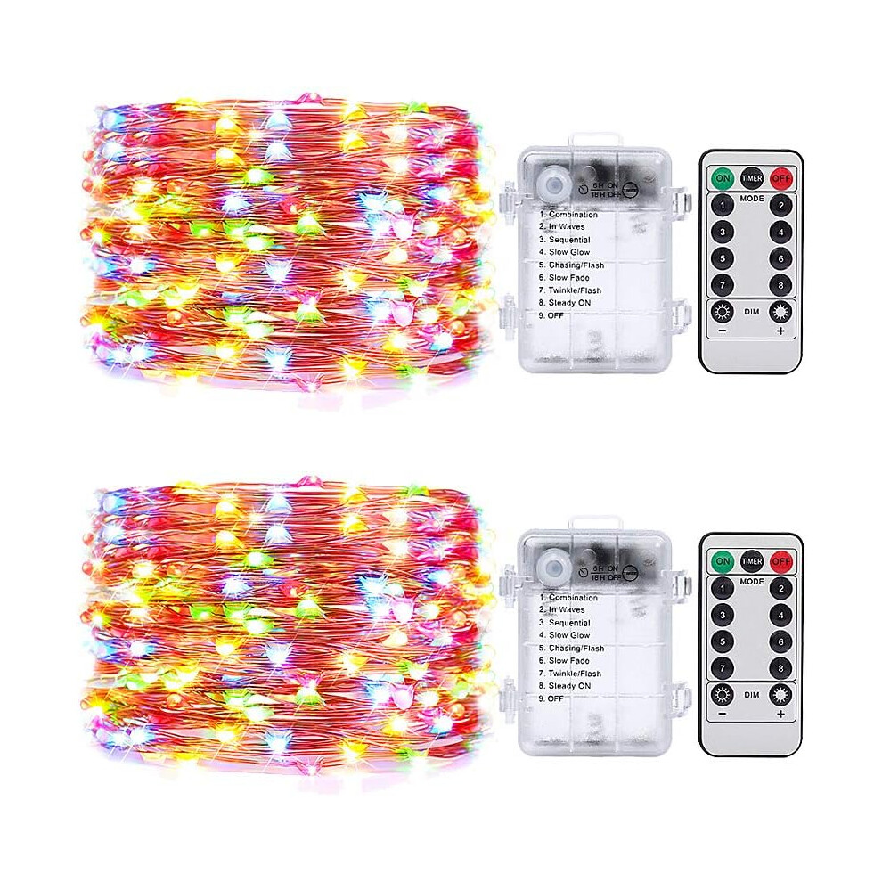 2 Pack 5m LED String Lights with 50 Multi-Colored LEDs, Battery Powered and Timer Setting Remote, Indoor or Outdoor