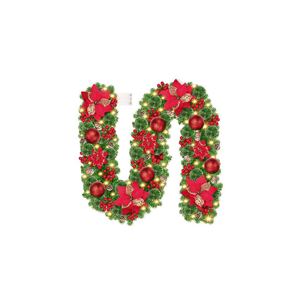Christmas Garland Decorations, CHOIGN 2.7m/9ft Christmas Wreath with 30 LEDs String Lights Battery Powered, Christmas Decorations Artificial