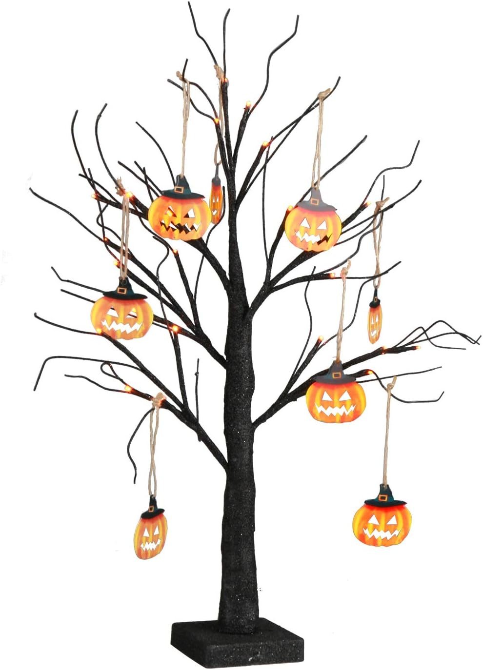 EAMBRITE Small Black Glitter Halloween Tree Light with 24 Orange Leds Battery Op