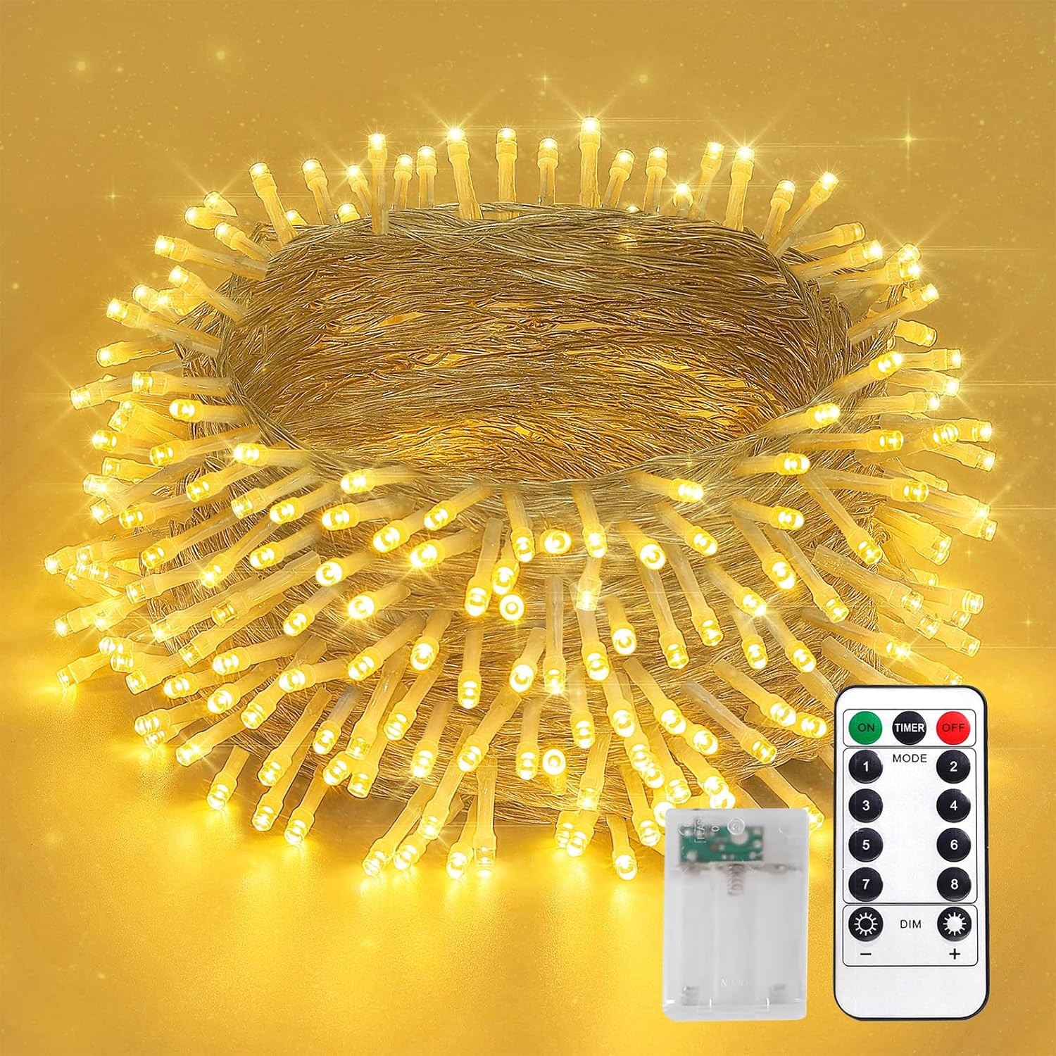 10M 100 Leds Battery Operated Led String Lights, 8 Modes With Remote Control Ideal For Balcony, Bedrooms (Warm White)