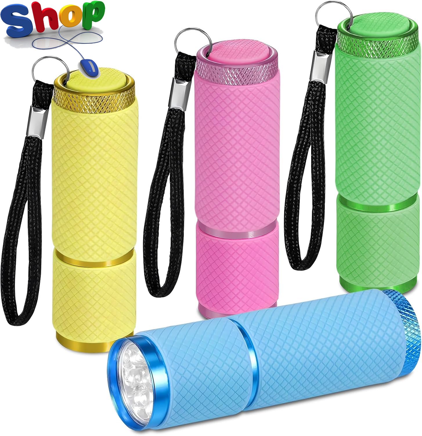 4 Pack Mini Torch Set, Super Bright Small Torches with 9 LEDs, Battery Powered for Kids & Adults, Camping Hiking Outdoor Gifts (Batteries Not Included)