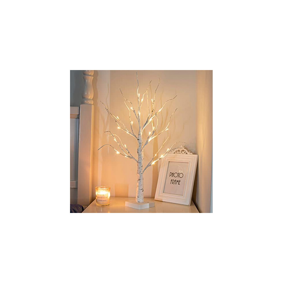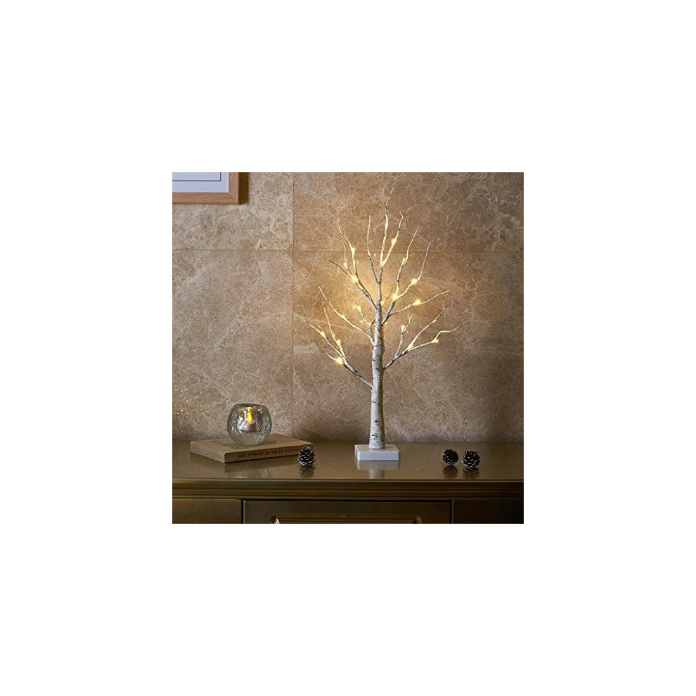EAMBRITE White Christmas Tree with Lights Mini Birch Twig Tree Ornament with 24 Warm White LEDs Battery Operated Tabletop Decoration for Christmas Home Party Wedding (60cm/2ft)