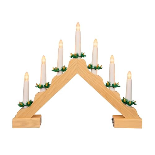 SHATCHI Traditional Wooden Pre-Lit Natural Candle Bridge Light 7 LEDs Bulbs - Battery Powered - Window Christmas Tree Home Office Desk Light Holiday Xmas Festive Decoration