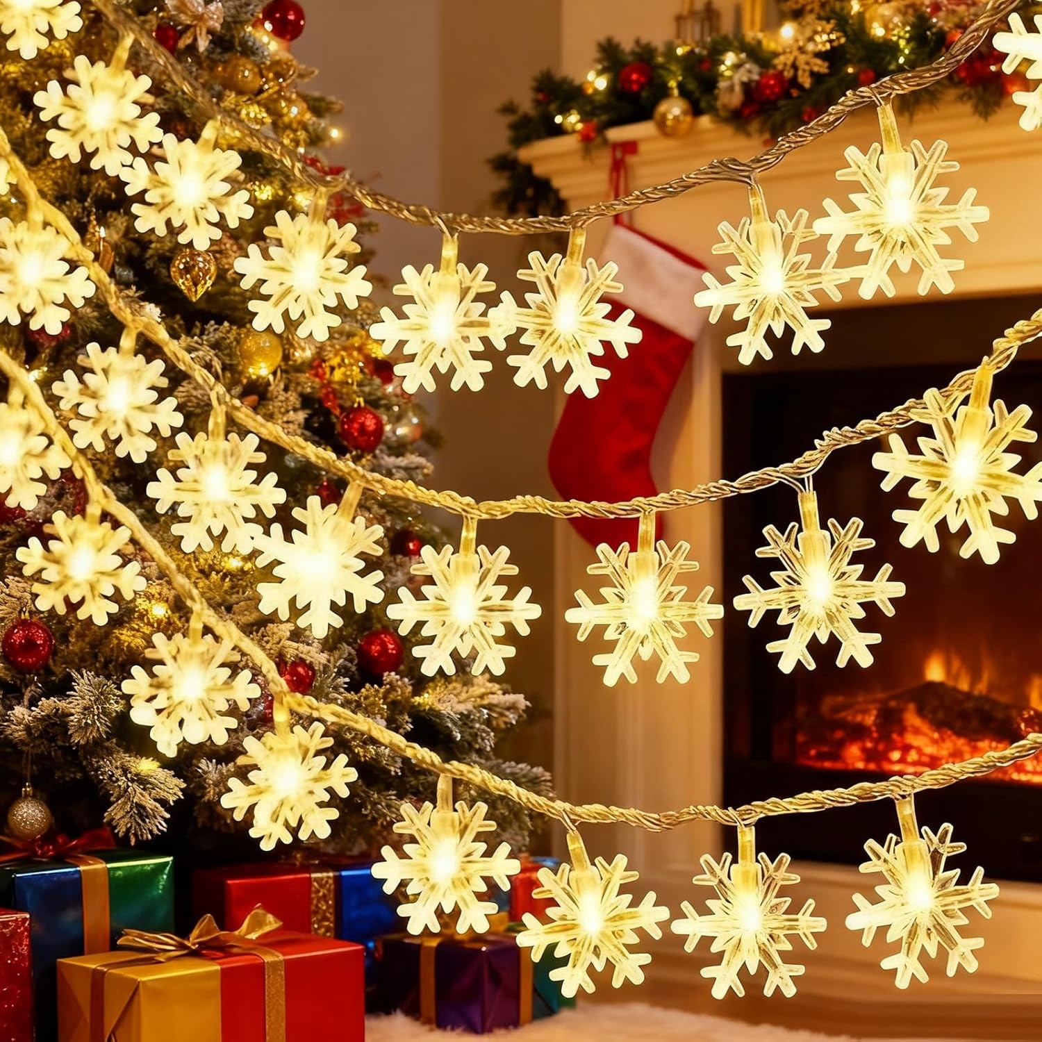 Snowflake Fairy Lights - 6M 40 LEDs Battery Powered String Lights with Steady a