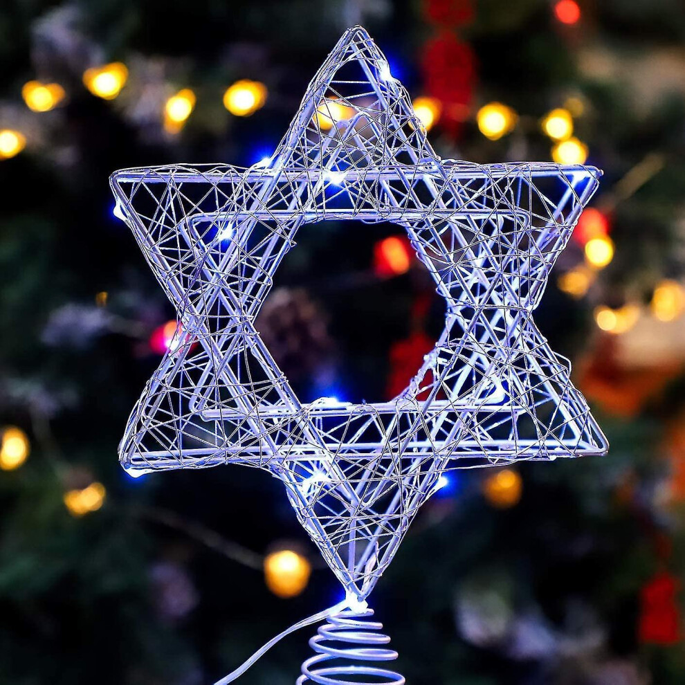 Christmas Hexagram Tree Topper. 7 Star Of David Metal Tree Topper With 20 Leds Blue Lights. Battery