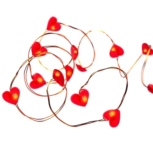 Hellum, LED Heart Fairy Lights, 20 red Hearts with red LEDs, Battery Operated (2AA not Included), for Valentines Day, Mothers Day, Birthday, Anniversary 570854