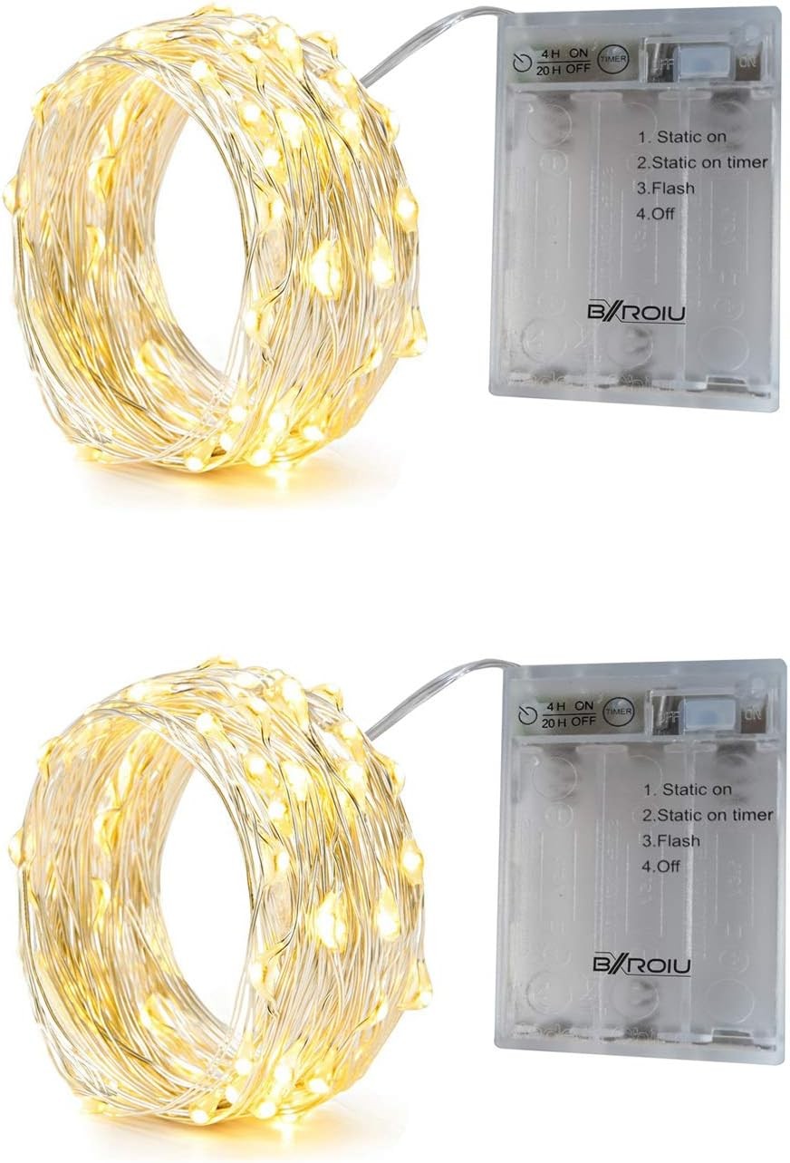 BXROIU [2 Pack 50 LEDs Fairy Lights Battery with Timer 3 Mode Silver Wire Chain