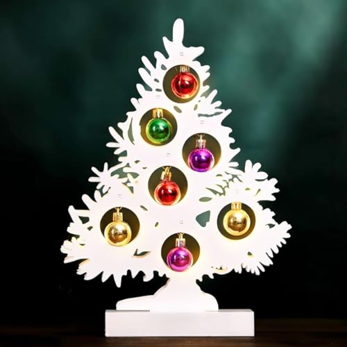 Marco Paul Pre-Lit Wooden Christmas Tree Decoration – Xmas Ornament with Warm White LEDs - Battery Operated Wooden Christmas Tree Decor for Mantelpiece, Table, Windowsill Festive Display