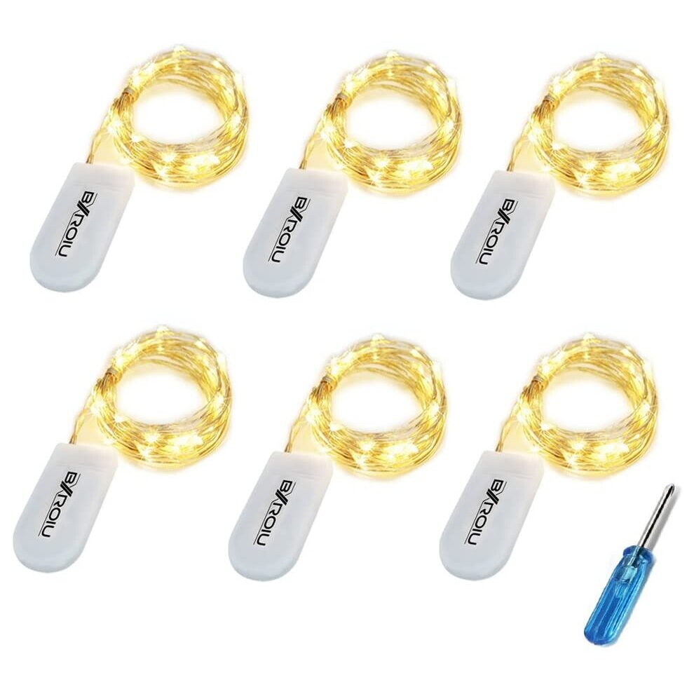 BXROIU ES-LCL-088 6-Pack 2m Fairy Lights with Silver Micro Wire, 20 LEDs, CR2032 Battery Operated, Warm White