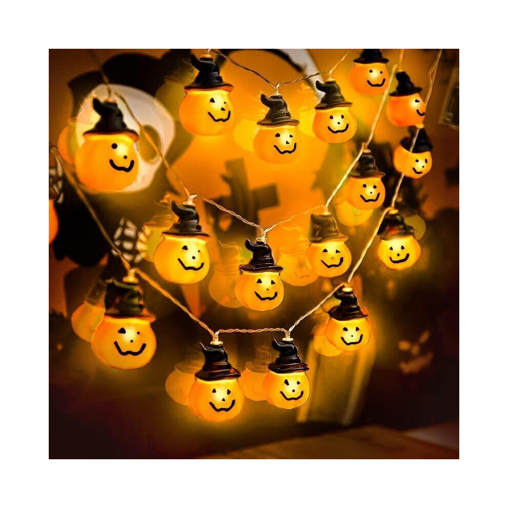 Halloween Pumpkin Lights with Witches Hat, 20 LEDs Pumpkin String Lights Battery Operated with 2 Modes Steady/Flashing Light