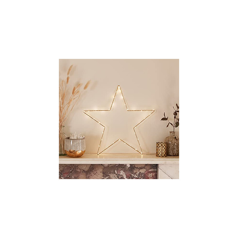 Lights4fun Christmas Indoor Gold Light Up Star Window Decoration with 40 Warm White LEDs Battery Operated Timer 35cm