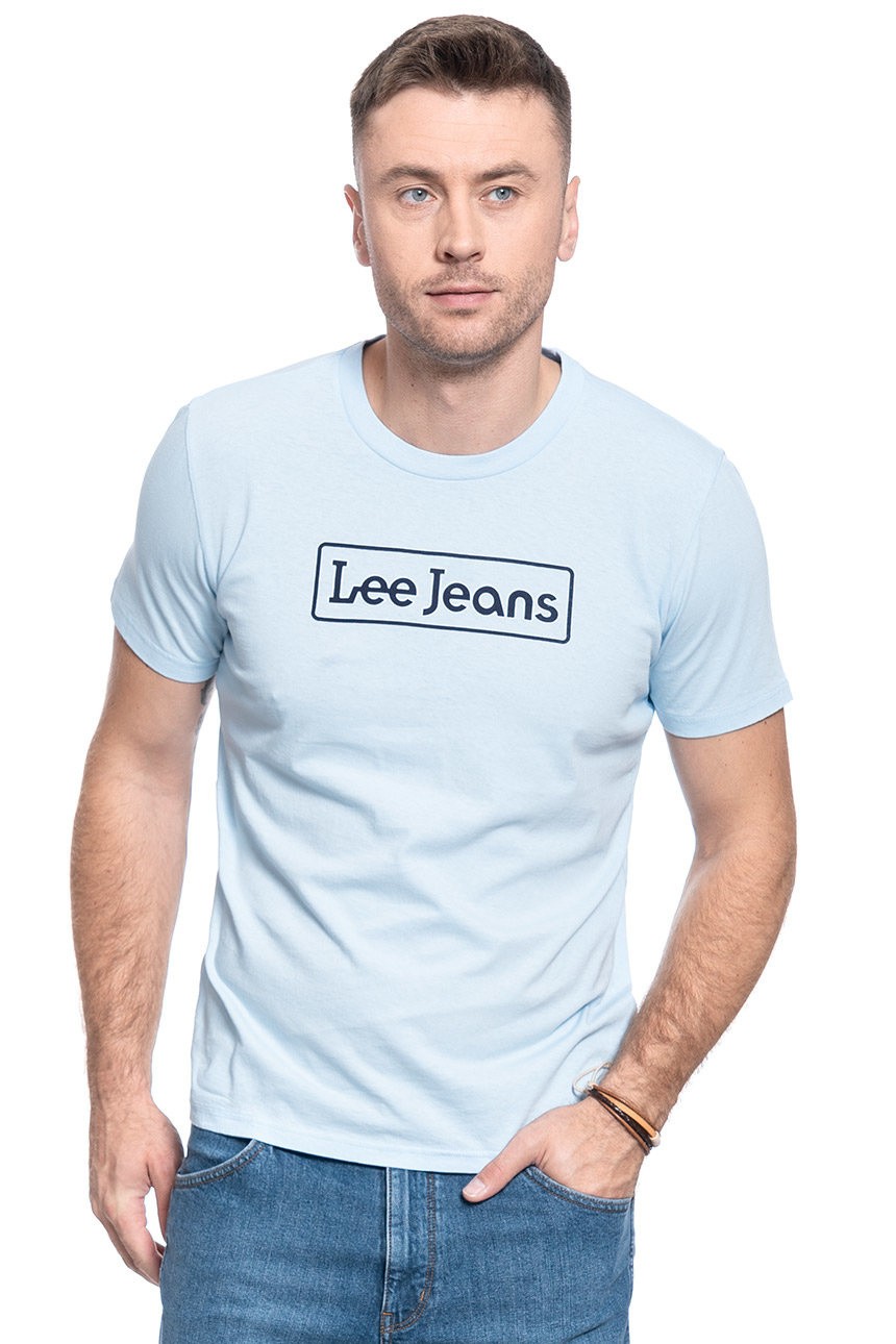 Lee Jeans Logo Print T-Shirt Men Medium Cotton Regular Fit Short Sleeve Sky Blue