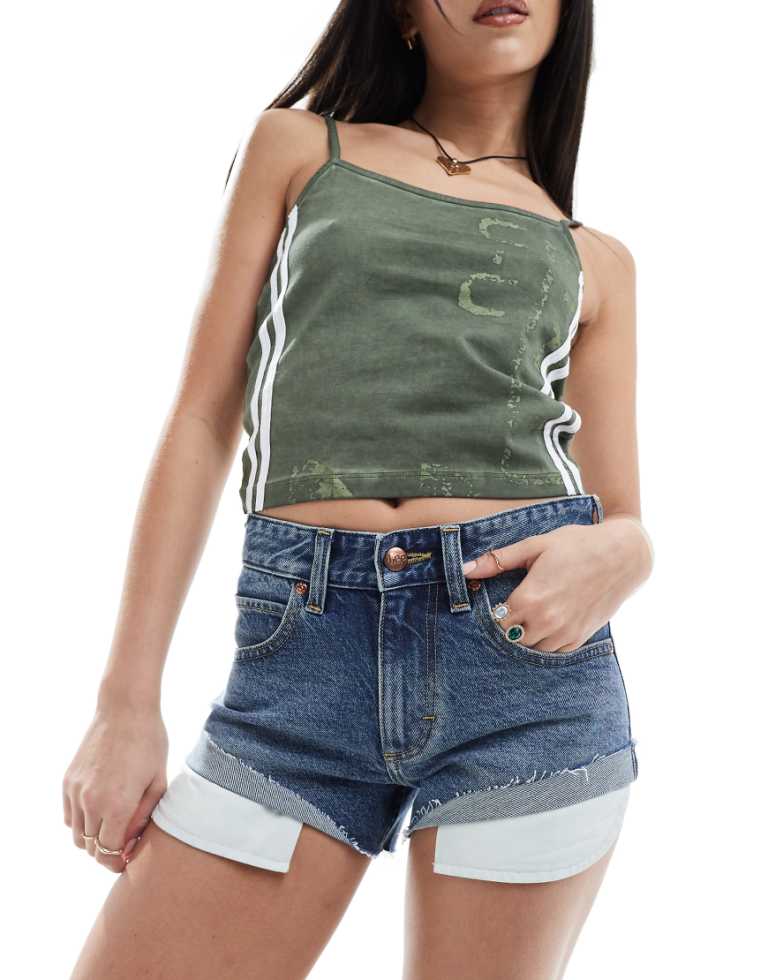 Lee Womens Rider short 2inch straight fit turn up denim shorts in mid vintage wash-Blue - Size 25 (Waist)