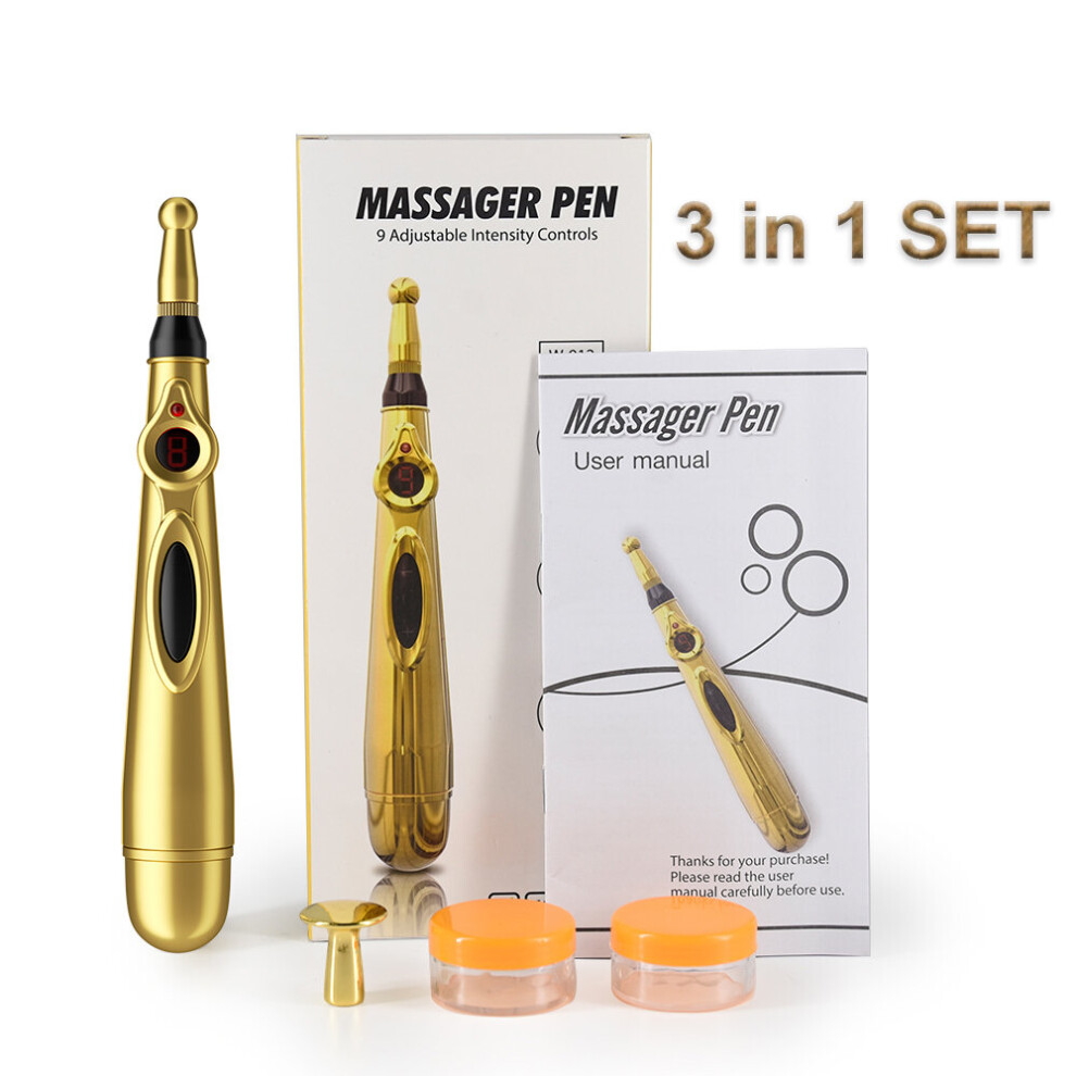 (a-3 IN 1 GOLD) Electronic Acupuncture Pen Meridian Therapy Machine Body Head Back Leg Massager Energy Pens Massager Relief Pain Tools 9 Levels