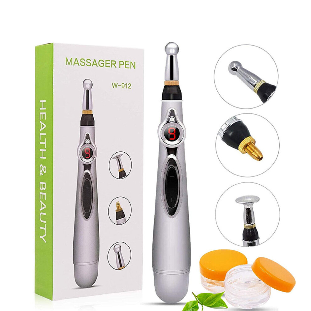 (a-3 IN 1 SILVER) Electronic Acupuncture Pen Meridian Therapy Machine Body Head Back Leg Massager Energy Pens Massager Relief Pain Tools 9 Levels