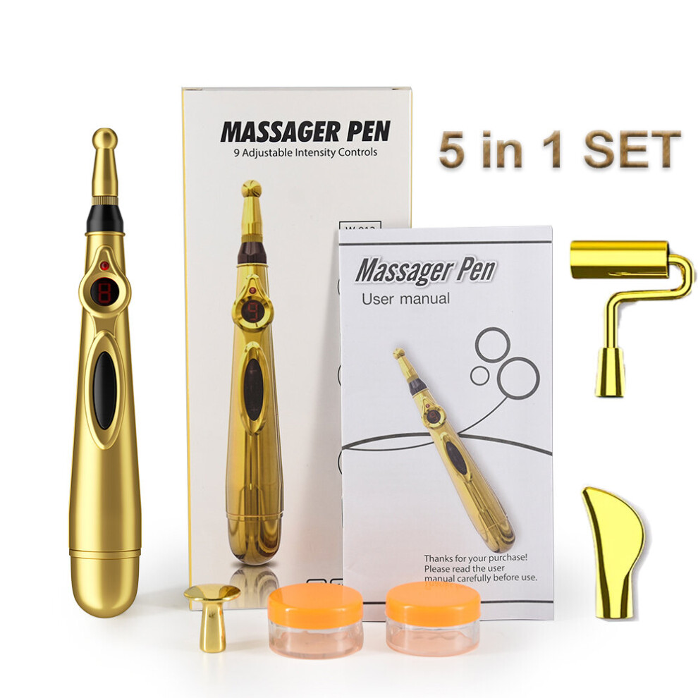 (a-5 IN 1 GOLD) Electronic Acupuncture Pen Meridian Therapy Machine Body Head Back Leg Massager Energy Pens Massager Relief Pain Tools 9 Levels