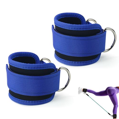 Eastrise Ankle Straps for Cable Machines, Gym Cuffs with Double D-Ring, Weight Lifting Leg Workout Attachment, Kickback Ankle Straps (Blue)