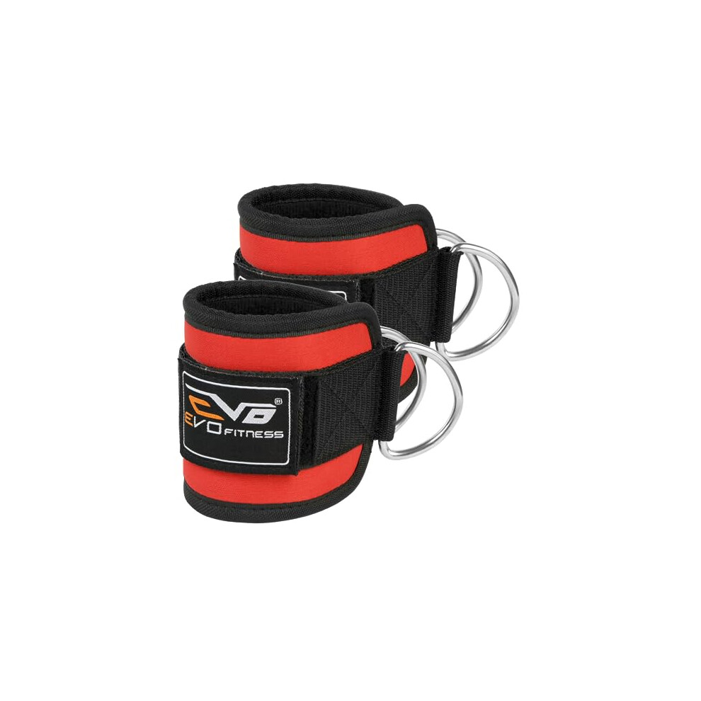 EVO PAIR Pulley Cable Machines Attachment Neoprene Ankle Cuff Gym Straps Weight Lifting Stainless Steel Ring Fitness Leg Workout Men Women [Sold as Pair]