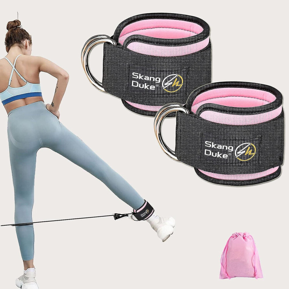 Fitness Ankle Buckle Leg Strength Trainer Sturdy Double D Rings Rubber Straps for Cable Machines Workout Men Women Portable Lightweight Durable Iron Material (Pink)