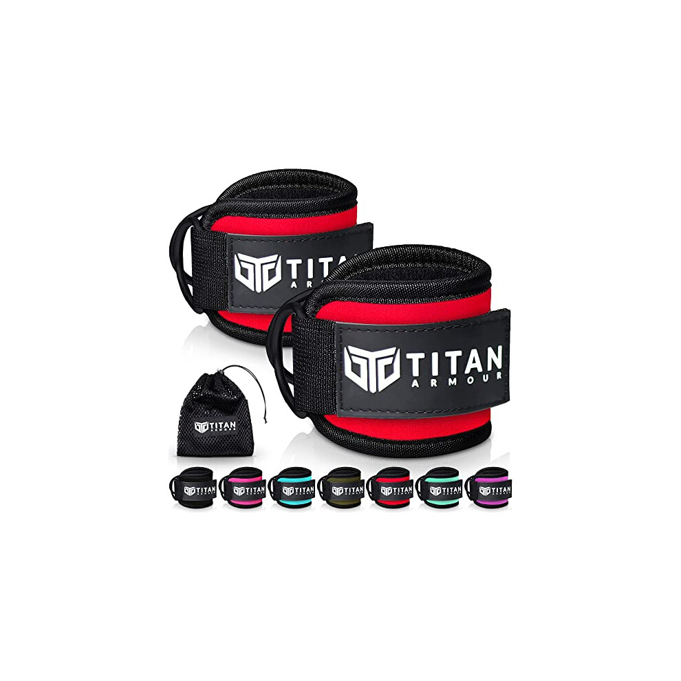 Titan Armour Ankle Straps for Cable Machines | Gym Cuffs w/Heavy-Duty Steel Double D-Rings & Adjustable Velcro Strap | Lower Body Workout: Leg