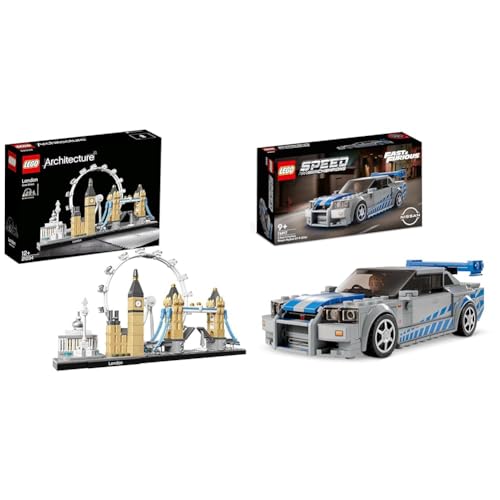 LEGO 21034 Architecture Skyline Model Building Set, London Eye, Big Ben, Tower Bridge Collection, Office & 76917 Speed Champions 2 Fast 2 Furious Nissan Skyline GT-R Race Car Toy Model Building Kit