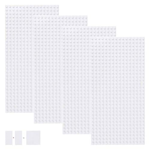 shineFinder 4 base Plates Compatible with Lego, Baseplate 5"x10" with 16 x 32 stud board (White)