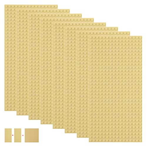 shineFinder 8 base Plates Compatible with Lego, Baseplate 5"x10" with 16 x 32 stud board (Sand)